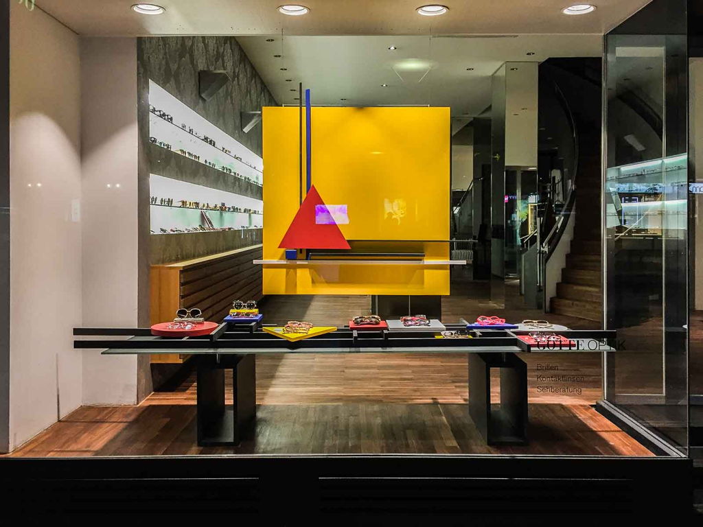 Die gestalterischen Prinzipien des Bauhaus faszinieren beim Optiker im Schaufenster