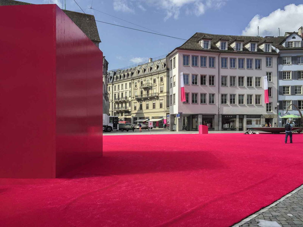 Anlässlich der Festspiele Zürich legten die Veranstalter im Münsterhof einen auffällig magentafarbigen Teppich aus. Als Anrainer war es der Wunsch von Optiker Zwicker, seine Verbundenheit mit dem Anlass zu signalisieren. Mit 3dimensional als Kreativpartner brachte er den Kulturevent mit farbigen Interventionen ins Ladenlokal. Von der Idee bis zur fertigen Produktion hat 3dimensional für den Kunden im Projekt den Lead übernommen.