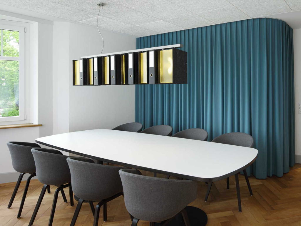 Die Übersicht bewahren und Unterlagen klar strukturiert ablegen – dieses Treuhänder-Thema hat Bureau Hindermann aufgegriffen und daraus zusammen mit 3dimensional eine Deckenleuchte kreiert, welche über dem Konferenztisch eine der Kernkompetenzen von Bühlmann & Partner sinnfällig macht.
